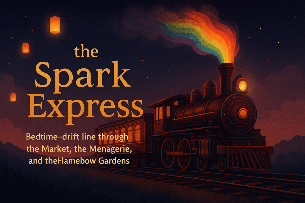 Bedtime-drift line through the Market, the Menagerie, and the Flamebow Gardens.